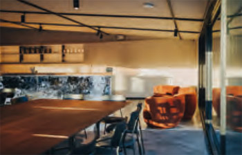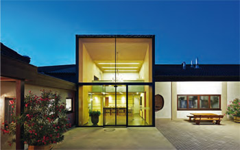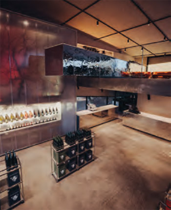 Von den ersten Ideen im Jahr 2010 bis zum Spatenstich für das neue Gebäude vergingen zwölf Jahre. Jahre in denen die Idee zu einer Zukunftsvision gereift ist. Wie über eine Landebahn nähert der Besucher sich vom Parkplatz aus der VINOSPHÄRE. Vorbei an den kreisrunden Designelementen, die sich überschneiden und einander umkreisen, erreicht man das moderne Weingut. Die Fassade, die durch Aussparungen den Blick in das Innere des Weinguts mit seiner speziellen Formsprache rahmt, umgibt ein Weinerlebnis auf zwei Ebenen: Im Erdgeschoss wandert der Besucher in der Vinothek durch das Sortiment des Weingut Schropp und erreicht über eine gläserne Treppe den hauseigenen Gastronomiebereich der VINOSPHÄRE. Dieser öffnet sich auf den zentralen Platz, der das Herzstück des architektonischen Konzeptes bildet. Hier fließt alles zusammen und es bildet sich ein Raum für die vielfältigsten Veranstaltungen; von der Weinverkostung, über den Weihnachtsmarkt,